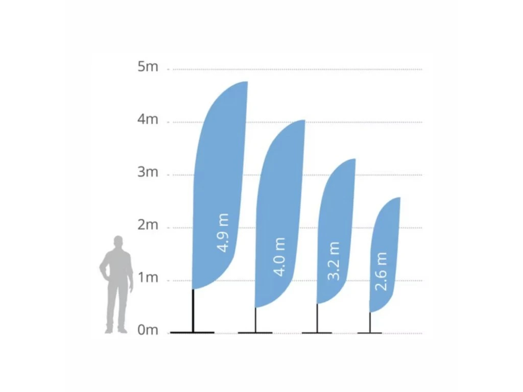 Beachflag je dostupný vo viacerých veľkostiach: