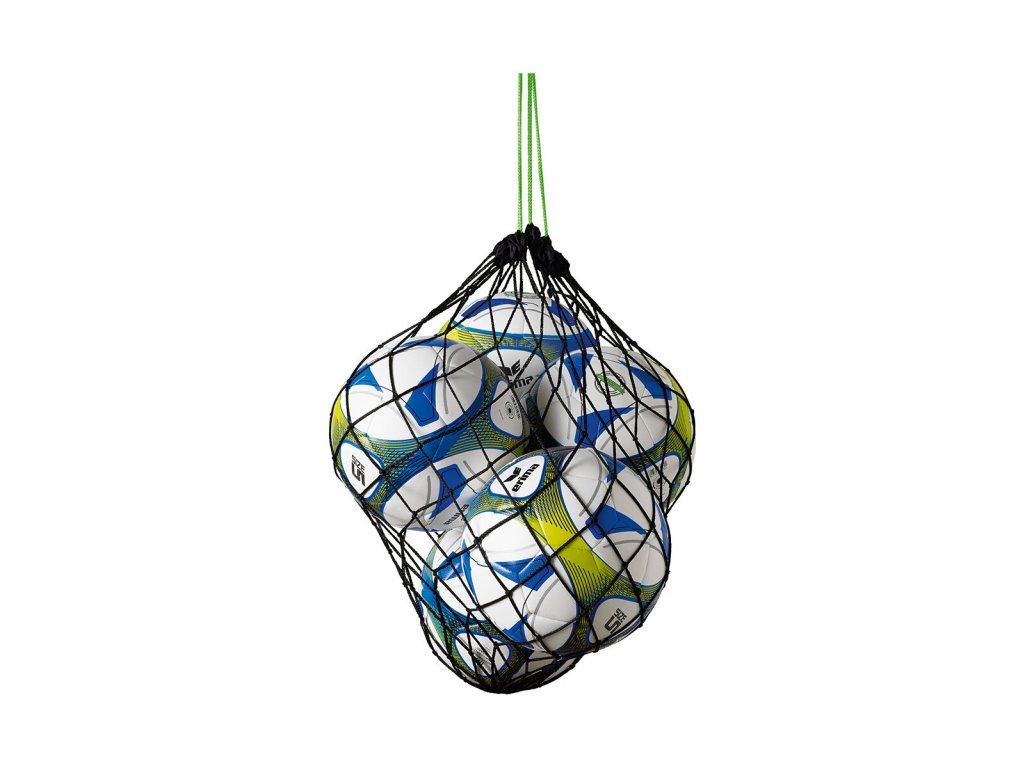 Kvalitní a vzdušná síť je určena pro 5 míčů, okraje jsou vyztuženy nylonovou páskou, stahovací šňůrka zabraňuje vypadávání míčů. Velice kvalitní síť. Má černou barvu a zelenou šňůrku. K dispozici je také síť na 10 míčků.