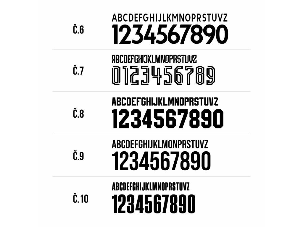 Pokud nemáte vlastní podklady, můžete si jednoduše vybrat z nabídky fontů dostupných na našem e-shopu a zadat číslo fontu a barvu potisku do poznámky