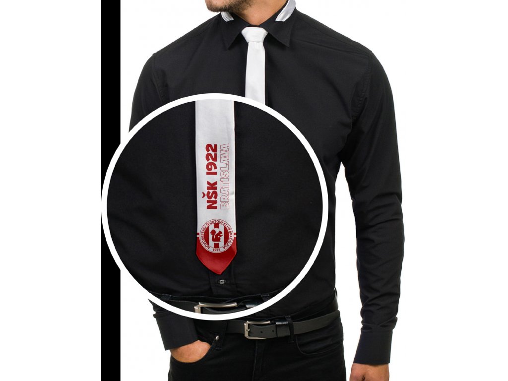 Elegancia spojená s klubovou hrdosťou! Biela kravata s logom a nápisom NŠK 1922 Bratislava je dokonalým doplnkom pre každého fanúšika, ktorý chce vyjadriť svoje spojenie s klubom aj pri slávnostných príležitostiach.