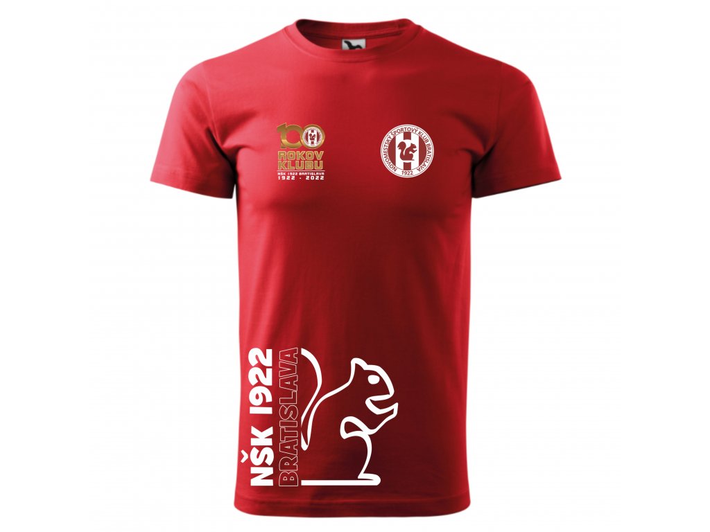 Osláv storočnicu svojho klubu štýlovo! Tričko BASIC k 100. výročiu NŠK 1922 Bratislava spája historickú hrdosť s moderným dizajnom. Slávnostná potlač k výročiu a ikonická silueta veveričky vytvárajú unikátny kúsok pre každého verného fanúšika a hráča.