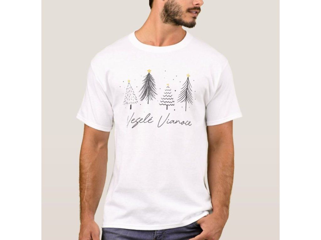 Pánske tričko BASIC v rôznych farbách s vianočnou potlačou "Stromčeky".